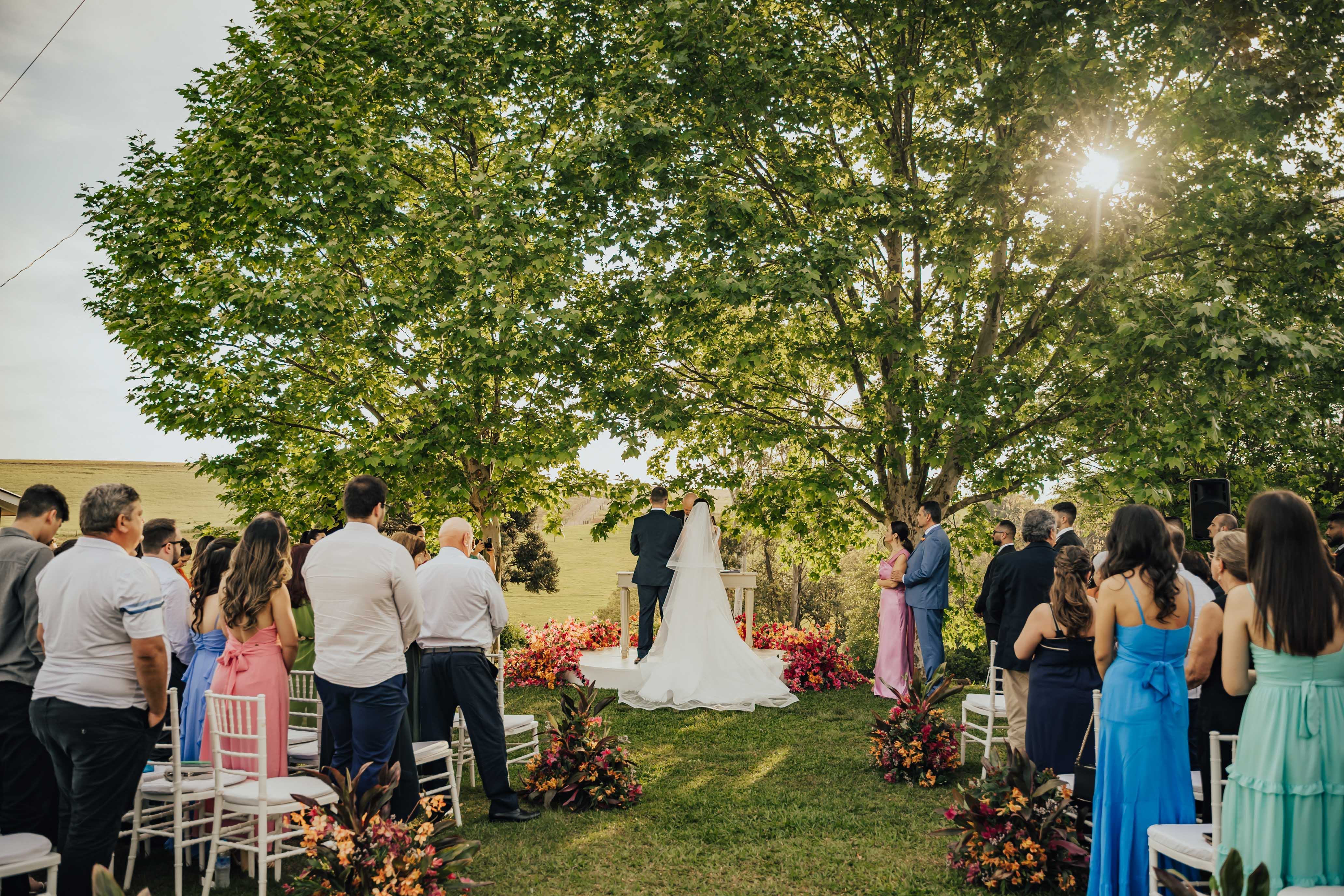 E foi assim que montamos uma estrutura completa, em meio a natureza, para o Casamento da Flavine e do Felipe acontecer na cabanha da família.